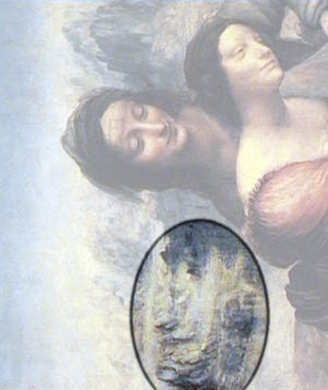 | At the beginning of the 20th century, a pupil of Freud discovered that Leonardo, in his work: The Virgin and Child with St. Anne, hid an image of a kite. Still others later noted in the mountains on the left side of the painting, the shape of a masculine face. It is this face that Federico Zeri, in a critique of the painting, dubs "the drowned man". And what is a kite if not an "animal composition" which Leonardo talks about in the Treatise on Painting? And what can one say about the drowned man? It is simply the portrait of a person, one of the various "men compositions" concealed in his works. | ||||