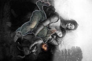 We have found this image by turning the upper part of St. Anne 90 degrees counterclockwise. In the inner part of the oval, in the part that really is a group of mountains, one can make out the figure of a masculine face, the so-called "the drowned man". | |||